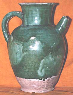 の窯の水注で、見事な緑色を呈してい