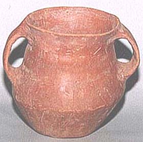 緻密な土質の紅陶で燃焼程度も堅く、腹部の鋭角的