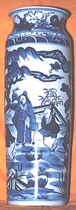 青花人物文筒瓶(民國初期時代、AD1912〜1922)