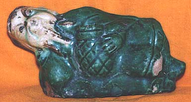 三彩横臥劉伶像水滴(明時代、AD1368〜1661)