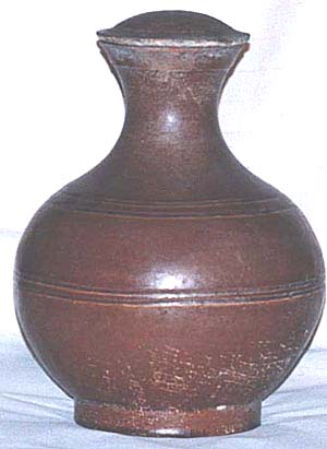 褐釉二重刻線文有蓋壺(前漢時代、BC206〜AD25)