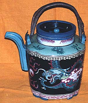 宜興窯琺瑯彩龍文提梁茶壺(乾隆・嘉慶年間、AD1736〜1820) |