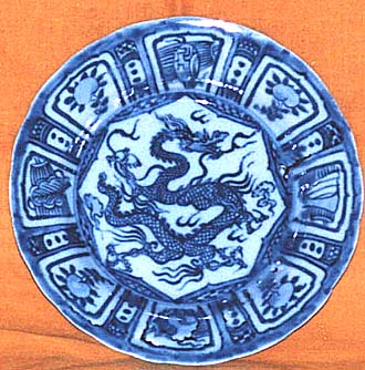 外銷瓷青花八開光向日葵龍文盤(清初期時代、AD1644〜1795)
