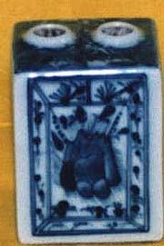 青花花草文角形燭臺(清末期時代、AD1875〜1911)