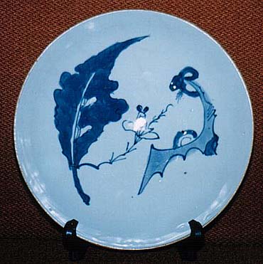 青花秋葉文皿(順治年間、AD1644〜1661)