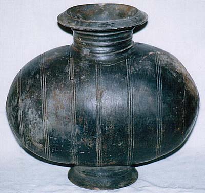 典型的な黒陶蛋形壺であるが、やや頸が高くて微妙にアンバラ