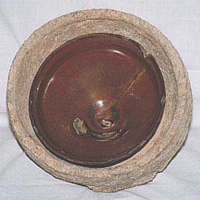 燃焼中に倒れ、陶器とさやとが接着し、不良品とし