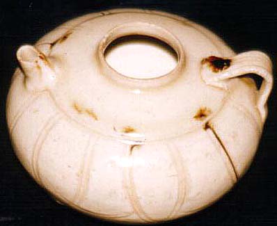 白磁鐵斑線刻蓮花文瓜形水注(五代時代、AD907〜959) |