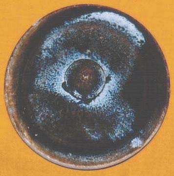 過ぎないが、それでも黄道窯黒釉藍白斑(花釉)の色調・釉調