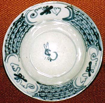 青花兔文兜鉢(順治・康煕年間、AD1644〜1722)