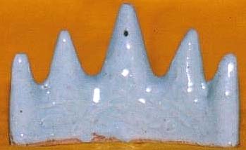 やや色調が薄いが、冬青釉である。浮彫紋が有るが、