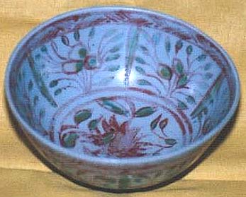 南京(古)赤絵花草文碗(嘉靖・萬暦年間、AD1522〜1619) |