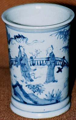 青花人物文筆筒(明末期時代、AD1621〜1661)