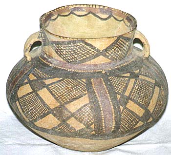 彩陶網目文直口雙耳壺(馬家窯文化馬廠系、BC2700〜2100)