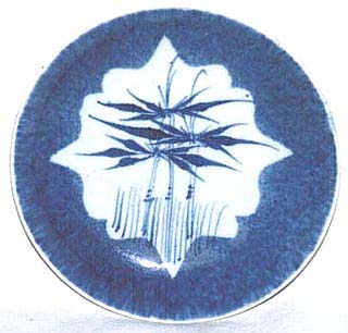 灑藍釉地留白青花竹葉文皿(清初期時代、AD1644〜1795)