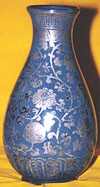 上に銀彩で唐草紋様が描かれている。胴部に大きな入
