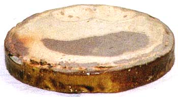 小型の丸陶硯である。青磁釉は僅かに側面を一周して