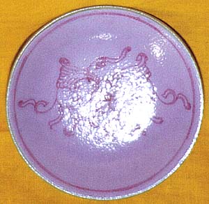 粉釉地臙脂紫彩花卉文小皿T(嘉慶年間、AD1796〜1820)