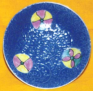 藍釉地軋道粉彩皮球花文小皿(嘉慶年間、AD1796〜1820)