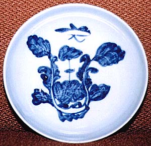 青花白菜文皿T(明末期時代、AD1621〜1661)