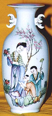 粉彩仕女圖有耳瓶(民國時代、AD1912〜1949)