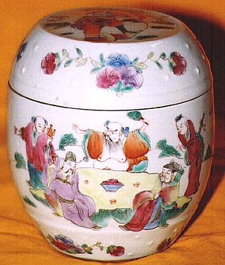 粉彩八仙圖有蓋鼓形罐(同治年間、AD1862〜1874)