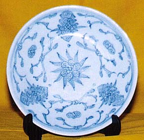 青花淡描花草文皿U(清中期時代、AD1796〜1850)