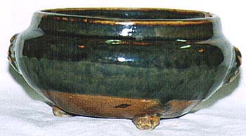 黒褐色を呈した鐵釉の香炉であるが、灰色がかった堅
