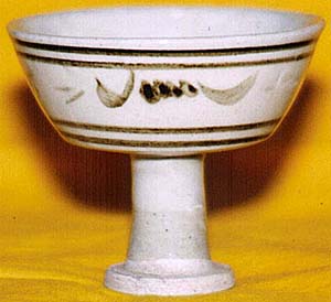 磁州窯系白磁鐵繪高足杯(清時代、AD1662〜1911) |