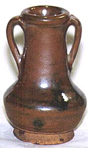 変わった形をした雙耳瓶で、鐵釉の色調もなかな