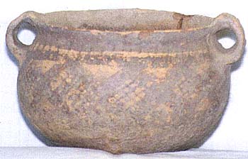 いが、彩陶の網目紋様の雙耳壺である。ただ、口縁部分