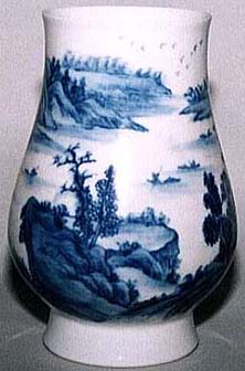 倣康煕青花山水文瓶(清末期時代、AD1875〜1911)