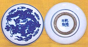 外面は青花の龍紋様であるが、内側はそれぞれ粉彩