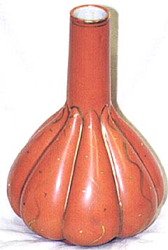 珊瑚紅釉金彩大蒜形長頸瓶(同治年間、AD1862〜1874)