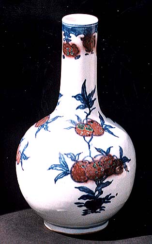 倣同治青花釉裏紅石榴文天球瓶(清末期時代、AD1875〜1911)