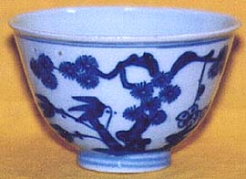 青花歳寒三友圖小碗(清中期時代、AD1796〜1850)