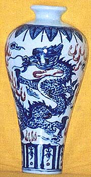青花釉裏紅龍文壁瓶(民國時代、AD1912〜1949)
