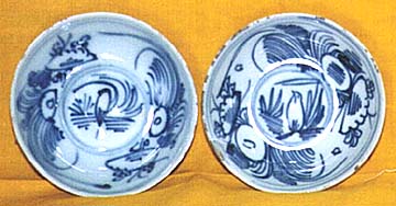 青花淡描花鳥文小皿二客(康煕・雍正年間、AD1662〜1735)