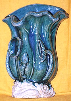 広東窯二彩貼花蓮花形壁瓶(清末期時代、AD1875〜1911)