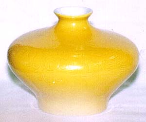 黄釉暗花龍文小壺(咸豊年間、AD1851〜1861)