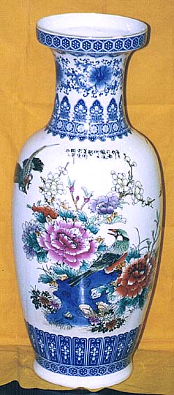 青花開光粉彩花鳥文大壺(現代、AD1990〜1999)