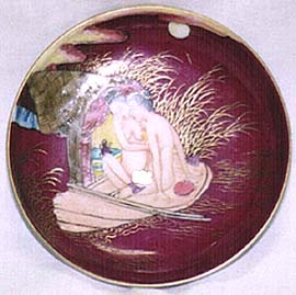 紅地粉彩春宮圖盤(光緒時代、AD1875〜1908)
