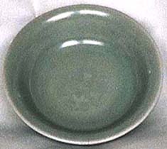 灰緑色の青磁で、釉薬が厚いため明白には見えな