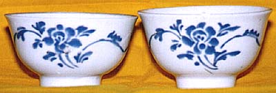 藍料牡丹文小碗一對(清末期時代、AD1875〜1911)
