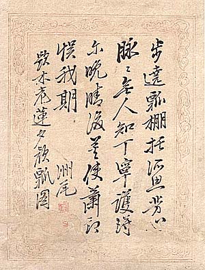 洲尾岩田忠治 、行書七絶(江戸時代、AD1792〜1816)
