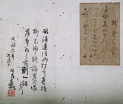 」の落款が押された、文政元年九月の加茂季鷹の極め文が付