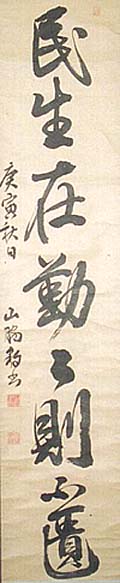 遯齋山脇豹(元沖)、行書八字(江戸時代、AD1757〜1834)