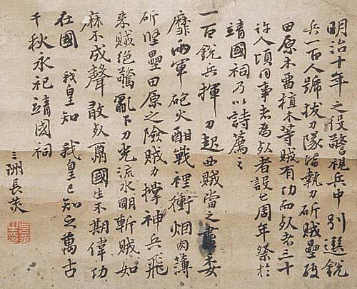 三洲長光、行書文併詩(幕末維新、AD1833〜1895)