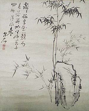 介石野呂隆、竹石圖併草書五絶讃(江戸時代、AD1747〜1828) |