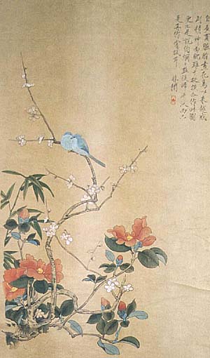 倣・于照、椿梅雙鳥圖(近代、AD1887〜1959)